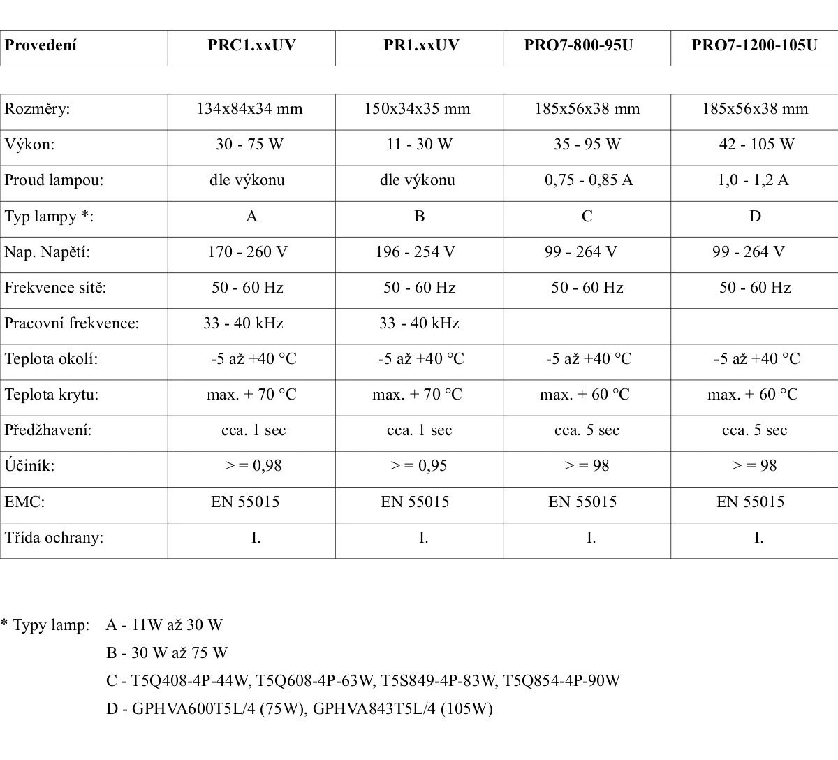 - splňuje normy EN55015, EN60928, EN60929